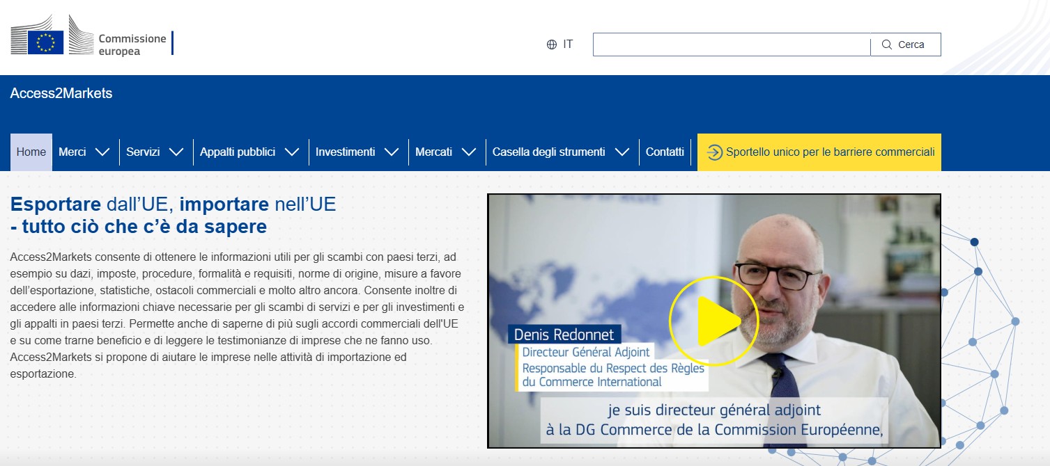 Nuovo seminario di presentazione del portale Access2Markets a cura della Commissione Europea, in programma il prossimo 24 marzo dalle ore 14.30 alle ore 17.00, su come utilizzare le diverse sezioni dedicate all’importazione e all’esportazione, come accedere all’elenco delle barriere commerciali individuate e come contattare il Single Entry Point per le barriere commerciali.